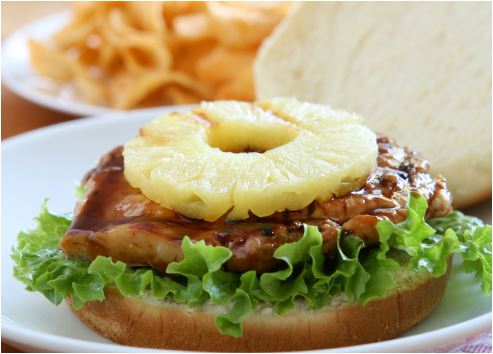 bestaande uit: gebekken ui, ananas