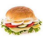 broodje met ham, kaas, sla, komkommer, tomaat, gekookte ei, ananasschuif, peper en zout