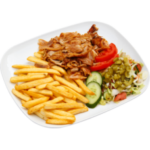 alle menu’s worden geseveerd met friet, sla, salade, komkommer, tomaat, augurken en saus